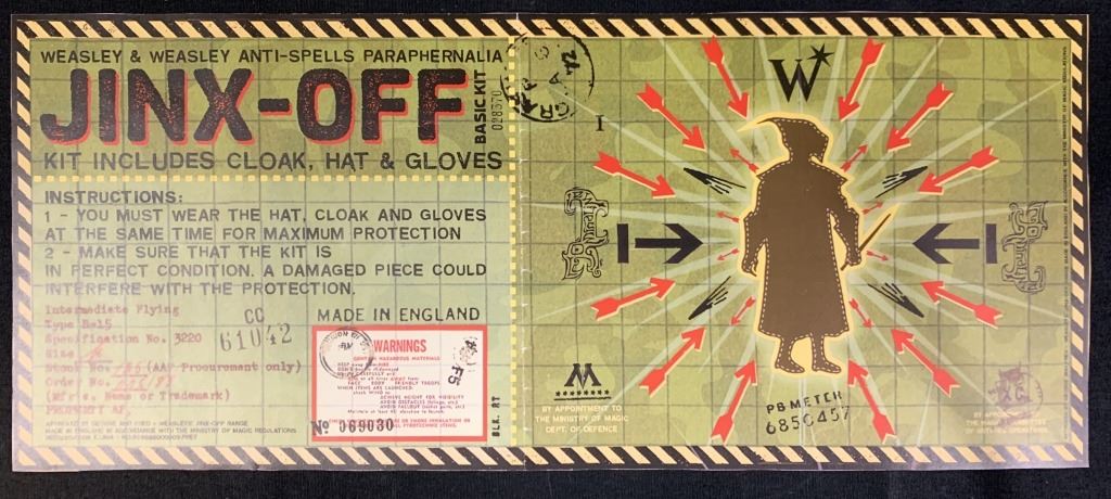 For the bogart box, I used a leftover Amazon box and folded it to the dimensions I needed. After painting the box black, I printed, “BEWARE! There is a BOGGART in this box. DO NOT OPEN!” on sheet for the top. Once opened, the lid had another sheet that said, “I Solemnly Swear I am Up to No Good” and when the map is removed, a sheet on the bottom stated, “Mischief Managed.”